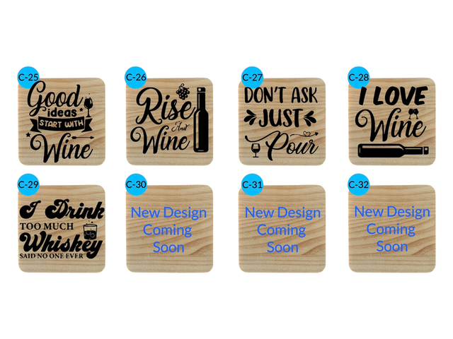 Designed for drink lovers, these laser-engraved wooden coasters feature classic and fun drink-inspired designs. Ideal for home bars, kitchens, or gifting. Made from durable wood with the option of a built-in bottle opener for added practicality.